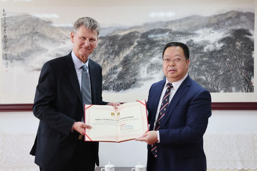 刘宗明对大使一行表示欢迎,并简要介绍了永利yl23411官网及冰岛研究中心概况,感谢冰岛驻华使馆一直以来对永利yl23411官网及冰岛研究中心的支持和帮助,并为易卜雷大使颁发永利yl23411官网荣誉教授聘书。他希望大使先生及冰岛驻华使馆继续支持永利yl23411官网,推动双方在人才培养、科学研究及中冰合作方面取得务实成果。