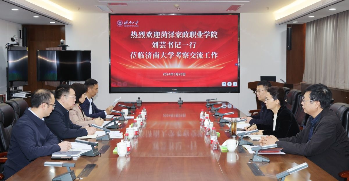 近日,菏泽家政职业学院党委书记刘芸、党委副书记董会龙一行来校交流访问。校长刘宗明,党委常委、副校长王霞,教务处、继续教育学院等部门负责人参加座谈会。