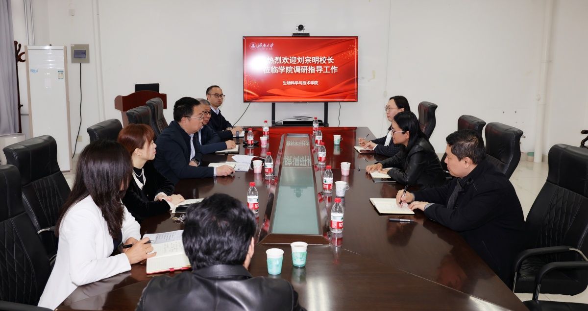 4月10日,校长刘宗明到生物科学与技术学院调研座谈。学校办公室、人力资源处、教务处、发展规划与学科建设处、科技处相关负责人,生物科学与技术学院班子成员参加活动。