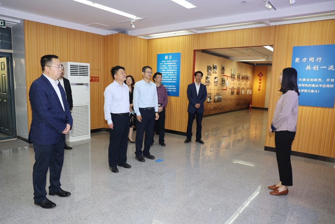 座谈会前,杨磊一行在刘宗明、李强陪同下参观了学校办学成就展。