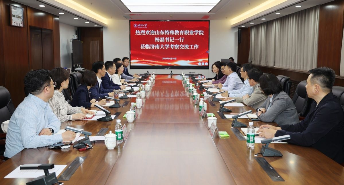 4月18日,山东特殊教育职业学院党委书记杨磊,党委副书记、院长李心沁,党委委员、副院长丁华一行来校考察交流。校长刘宗明,党委常委、副校长王霞,党委常委、副校长李强,学校办公室、党委学生工作部(处)、党委教师工作部、教务处、团委等相关负责人参加座谈会。