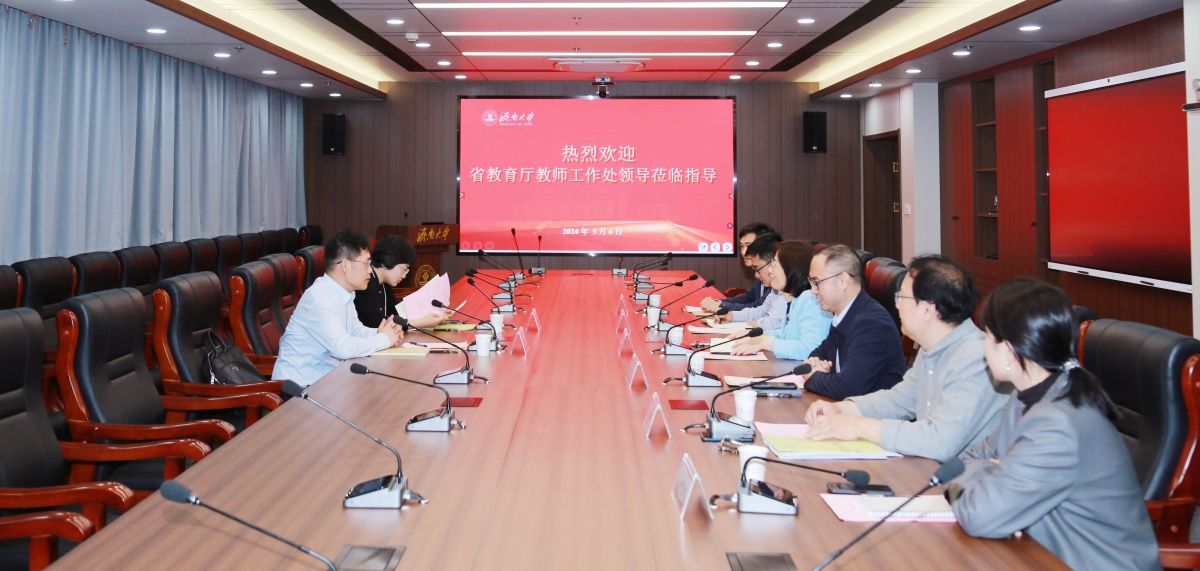 王霞代表学校对省教育厅教师工作处领导莅临调研指导工作表示热烈欢迎,感谢省教育厅多年来对学校工作的关心、指导和支持,介绍了学校的教学基本情况,师范专业认证工作以及围绕人工智能开展教学改革的相关举措。