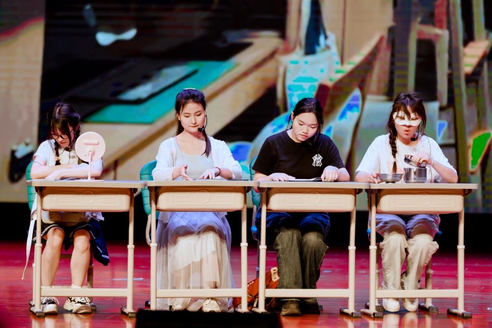 《时间重启》主要讲述主人公萧云大学生活陷入沉沦,每天重复着懒散拖延的生活模式,忘记了曾经的记者梦想。一天,她发现时间停滞不前,试图改变却无果,萧云决定重拾梦想,打破时间循环,找到生活意义,迎来了新生的故事。展演前期,同学们精心组织排练,不断打磨,虚心接受专业舞台剧老师的指导。表演中,同学们全情投入,引人入胜。剧目来源于同学们的真实生活,以舞台表演的形式呈现他们日常学习、生活中遇到的心理问题,同学们通过再现、体验、领悟剧中角色的心理困扰和冲突,在剧中得到启示、获得力量、让自己内心正常的成长。