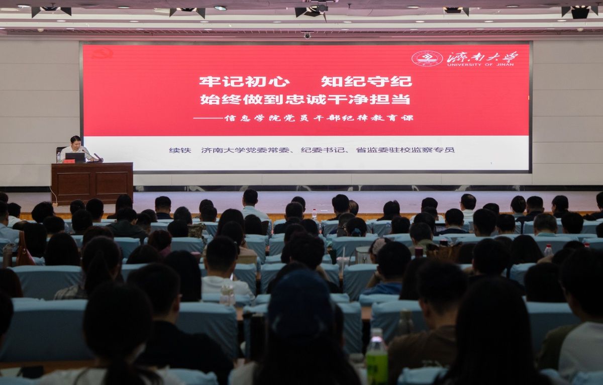 为扎实开展党纪学习教育,进一步强化纪律意识、加强自我约束、提高免疫能力,增强政治定力、纪律定力、道德定力、抵腐定力,始终做到忠诚干净担当,根据中央、省委和学校党委“关于在全党开展党纪学习教育”的相关通知要求和工作方案部署,同时,为认真落实2024届毕业生廉洁教育等系列活动要求,5月28日,学校党委常委、纪委书记、省监委驻永利yl23411官网监察专员续铁以《牢记初心,知纪守纪——始终做到忠诚干净担当》为题,在第一学术报告厅为信息科学与工程学院全体党员及毕业生代表共计三百余人讲授专题党课。学院党委书记夏卫东主持党课活动。