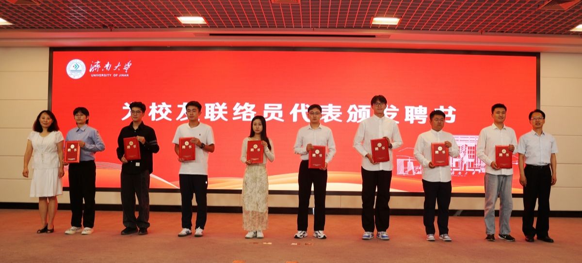 与会职能部门领导为校友联络员代表颁发聘书。