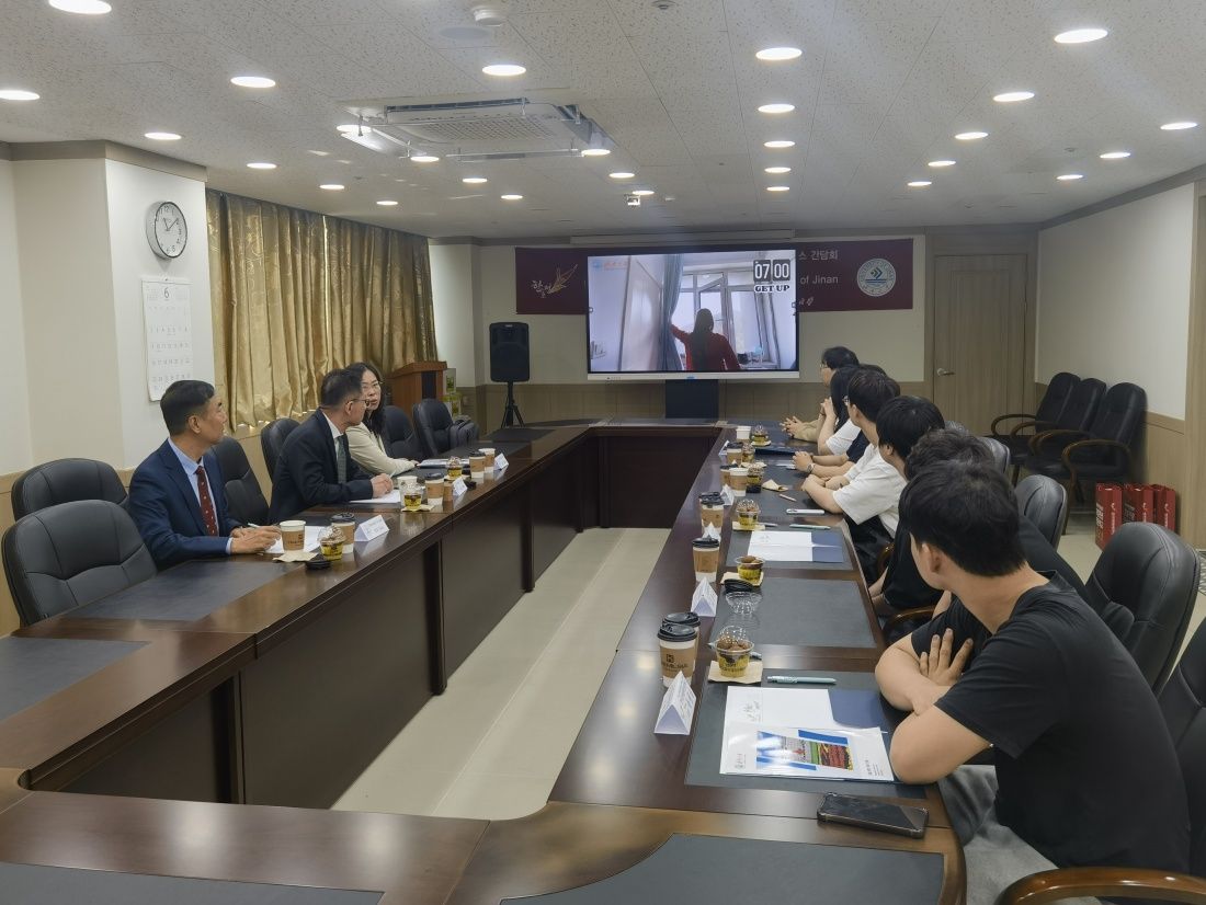 在韩国酒店观光专门学校,代表团一行与董事长陆光心、院长李元英会见会谈,双方回顾了两校多年来在学生项目、教师互访等方面的合作成果,并续签两校2+2合作交流项目协议。随后,双方就相关专业开展职业技能证书培训项目、教师互访等内容进行深入探讨。会见结束后,代表团面向韩国学生进行宣讲,介绍来华留学相关政策,并就合作项目回答韩方学生的提问。