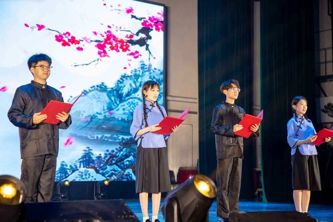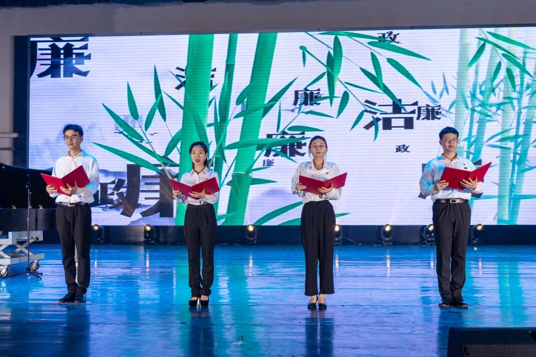 晚会在音乐学院带来的开场舞《冰凌花》中拉开了序幕,舞者们动作流畅而富有力量,将音乐的节奏与舞蹈的韵律完美结合,献上一场视听盛宴。随后,学院组织员李童童带来独唱歌曲《我爱你中国》,歌声中饱含着对祖国的热爱与敬意。乐队《夜空中最亮的星》旋律响起,时而清越悠扬,仿佛流淌着往日青涩的校园时光,时而激昂有力,鼓励毕业生们不惧挑战,勇往直前,追寻属于自己的那片星空。诗歌朗诵《廉洁颂》歌颂了廉洁自律的高尚品质,勉励毕业生们在未来的人生道路上保持清正廉洁的品格,树立正能量;《送别》传达了毕业生们于毕业之际对母校、老师、同学们深深的眷恋,洋溢着对过往的怀念和对未来的期许。2020级毕业生程至夏和唐跃溪带来的《光阴的故事》《起风了》《再见》三首经典歌曲串烧引领全场师生重温青春岁月,歌声中饱含的深情让许多毕业生潸然泪下。在舞蹈节目《相亲相爱一家人》中,舞蹈者们以优美的舞姿深情演绎往日时光,在灯光与音乐的映衬下,用肢体语言讲述着关于爱的故事。全体师生亲如一家,无论毕业生们未来前往何处,母校将永远是他们坚实的依靠。