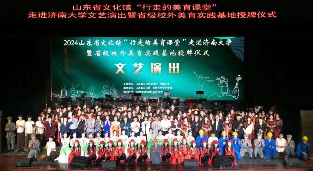 6月21日晚,山东省文化馆“行走的美育课堂”走进永利yl23411官网文艺演出暨省级校外美育实践基地授牌仪式在济大礼堂举行,山东省文化馆副馆长王芹,永利yl23411官网党委常委、副校长王霞,以及各部门相关领导、学校师生共同出席此次活动。