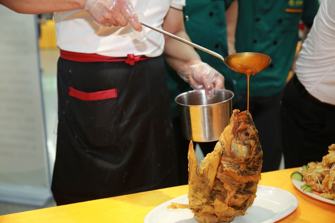 参赛的各食堂员工在比赛中展现拿手绝技,切磋厨艺技能。自选菜环节,大厨们各展奇招,色香味俱全的菜肴像一件件精美的艺术品,让人“烹”然心动。经过激烈角逐,第三食堂李吉润、第二食堂初荣宁等八人获得个人组特金奖,授予“济大名厨”称号;永利yl23411官网文化和旅游学院烹饪与营养教育专业学生的展台“孔雀迎宾”、第二食堂和第九食堂一二楼共同报送的展台“学齐鲁文化、品儒家美食”获得团体特金奖;北京千喜鹤科技服务有限公司等19家公司获得最佳组织奖。