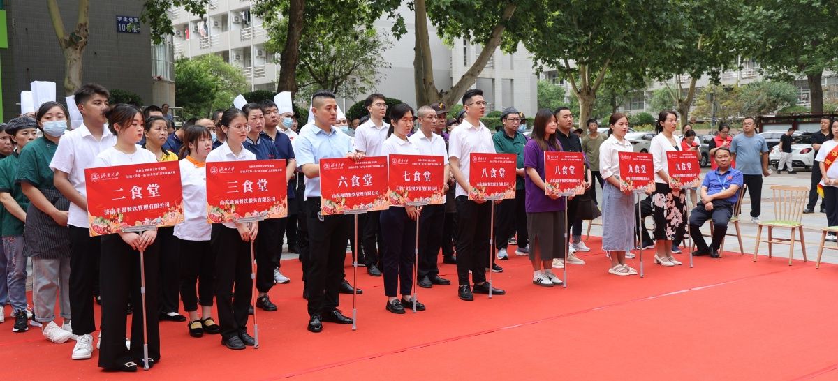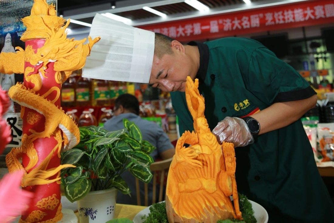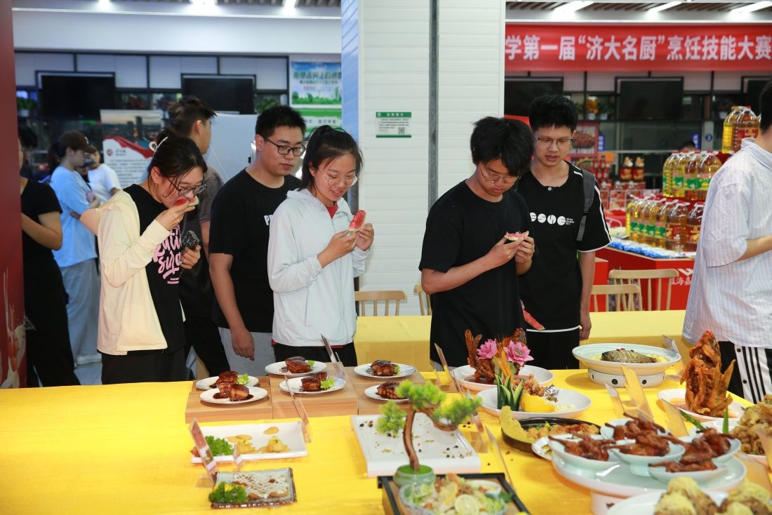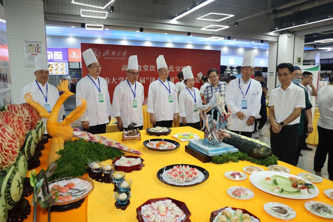 7月8日上午,高校食堂饮食文化交流暨永利yl23411官网第一届“济大名厨”烹饪技能大赛在第八食堂进行。山东省教育发展服务中心党委书记、主任魏光祥,学校党委常委、副校长李强,山东省学校后勤协会副会长兼秘书长刘学祥,中国烹饪大师山东省烹饪协会监事长、济南烹饪协会会长李建国,山东师范大学、山东农业大学、山东财经大学、山东建筑大学、山东交通学院、山东女子学院等后勤管理部门负责人,学校党委宣传部、学生工作部(处)、党委保卫部 安全管理处、计划财务处、工会、团委、文化和旅游学院、后勤管理处等相关负责人共同参加此次活动。