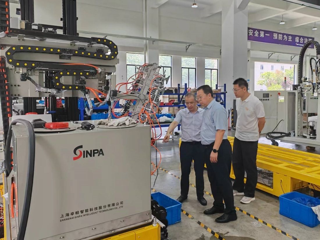 7月8日,刘宗明一行走访了校友企业——辛帕智能科技(平湖)有限公司,开展访企拓岗活动。活动中,刘宗明一行参观了公司的研发中心和生产车间,详细了解了企业的发展历程、业务领域、技术研发、人才需求等情况。双方就人才培养、学生就业、科研合作等领域进行了深入交流。