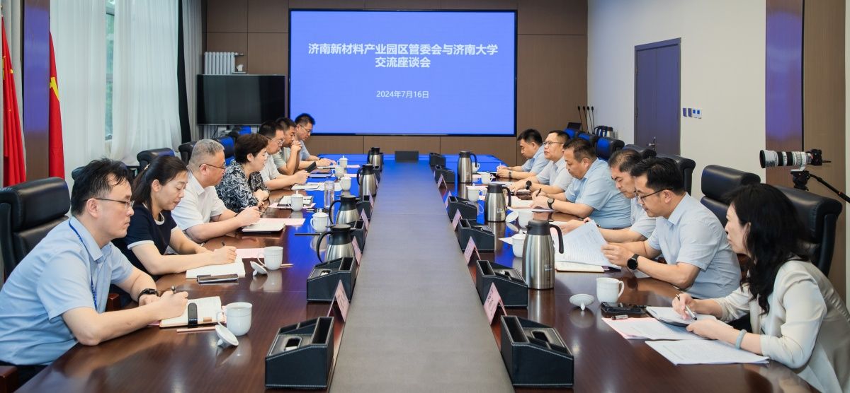 7月16日,学校党委书记刘春华带队到济南新材料产业园区调研。学校党委副书记、校长刘宗明,党委常委、副校长黄加栋,天桥区委书记孙战宇,天桥区政府党组成员、副区长张舒平,济南新材料产业园区管委会主任韩利师,副主任张良通出席活动。天桥区科技局、济南新材料产业园区管委会投资促进局、学校党委办公室 校长办公室、科技处、合作发展处、大学科技园相关负责人参加调研活动。座谈会由韩利师主任主持。