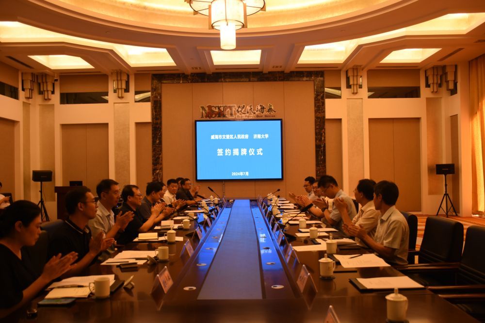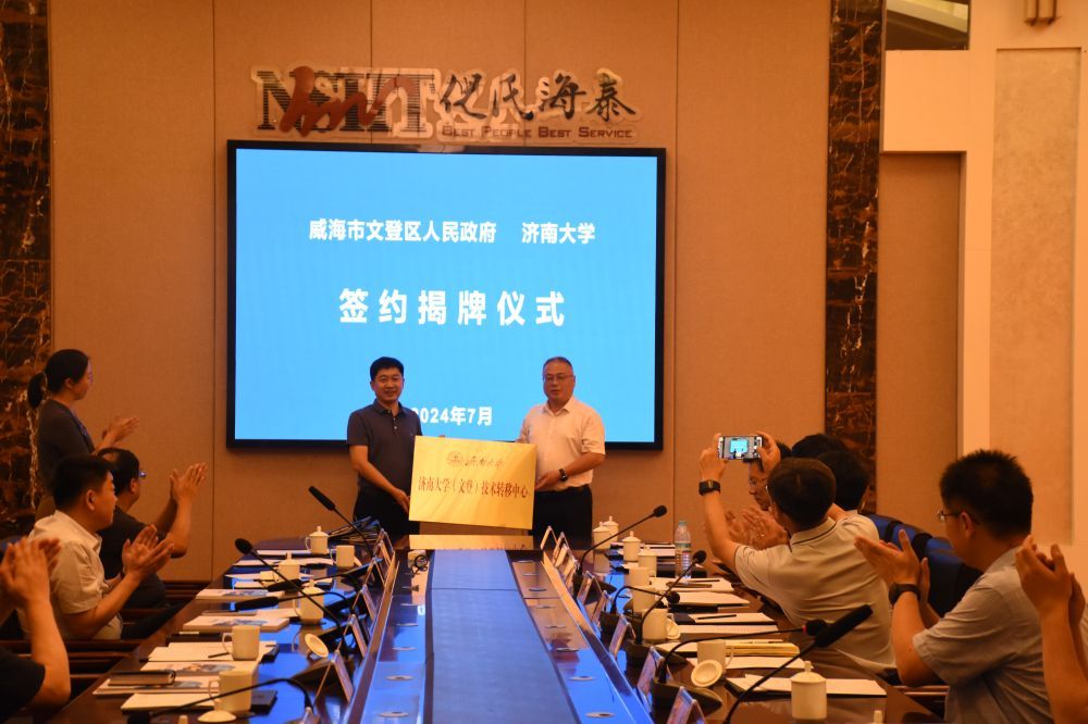 座谈会上,合作发展处处长刘振与顾甜甜签署了文登区与永利yl23411官网合作协议,黄加栋与刘军共同为“永利yl23411官网(文登)技术转移中心”揭牌。