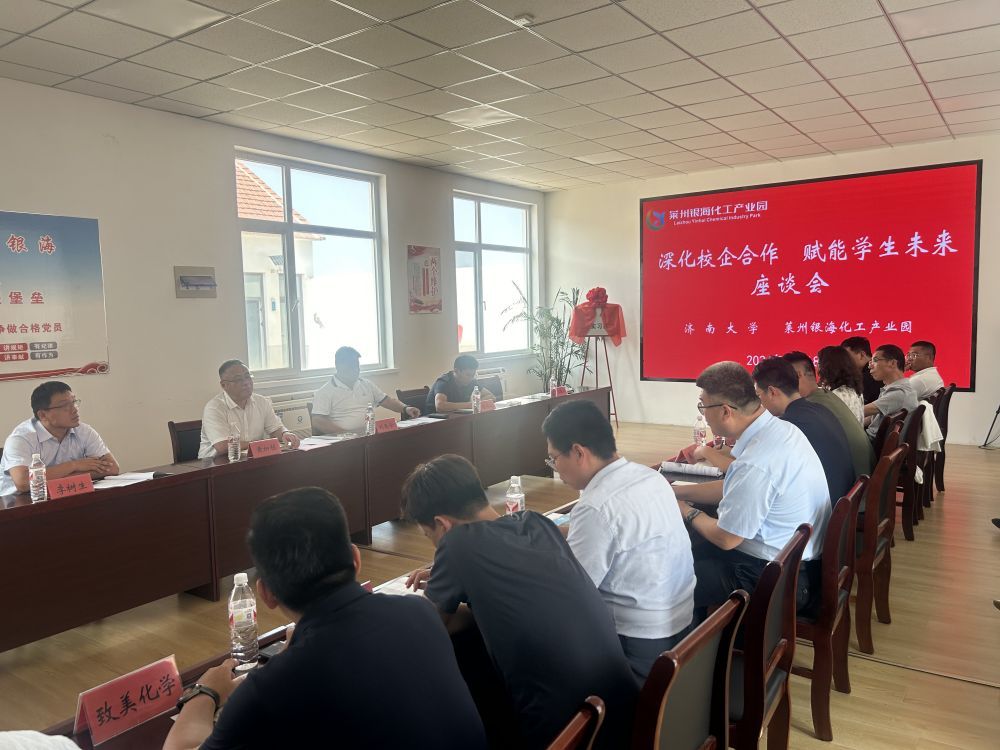 7月18日下午,黄加栋一行来到莱州市银海化工产业园开展校企合作交流。莱州市政府党组成员、副市长邱召明,莱州银海化工产业园管理服务中心党组书记、主任尹兆忠及园区12家企业负责人参加了交流活动。邱召明对永利一行到来表示热烈欢迎,感谢永利yl23411官网长期以来对莱州市及银海化工产业园建设的大力支持,详细介绍了莱州市企业发展情况、技术及人才需求情况,表达了与永利yl23411官网开展全面深入合作的强烈愿望。黄加栋对莱州市和银海化工产业园给予学校发展的支持表示感谢,他指出,永利yl23411官网的优势特色学科和科研方向与莱州市产业布局高度契合,双方前期已经在材料、机械、水利和生物等产业及化工园区建设等领域有了很好的合作基础,希望双方进一步拓展合作领域和内容,进一步深化实质性合作,以科技赋能地方区域经济发展,为学生提供更多就业机会。