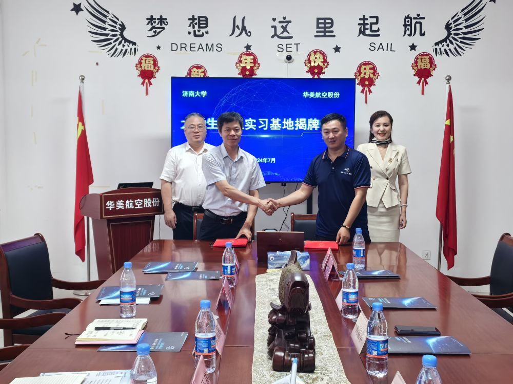 随后,黄加栋一行来到威海华美航空科技股份有限公司,参观了企业无人机产品展厅,与董事长刘淑华、销售部经理于祎霖等相关人员进行了座谈交流。刘淑华对黄加栋一行来访表示热烈欢迎,介绍了公司的主要产品、发展成就和未来规划,表达了在无人机产业相关领域与学校开展科技攻关、就业实习等方面合作的强烈愿望。黄加栋介绍了学校高端装备、人工智能、新材料等领域的特色和优势,希望双方以本次座谈交流为契机,在无人机、新能源等领域开展务实合作,共同为低空经济发展作出贡献。