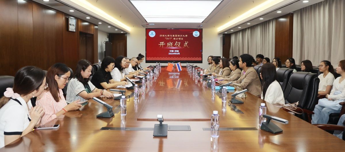 开班仪式上,张勇代表学校对泰国南方大学“3+1”项目师生的到来表示热烈欢迎,并详细介绍了学校办学情况和山东深厚的历史文化底蕴及经济社会发展情况。张勇指出,“3+1”项目作为两校合作的重要组成部分,为泰国中文专业学生提供了更加广阔的学术视野和实践机会,希望同学们在随后的学习生活中全面提升自身汉语水平,深入了解中华文化,争做两国文化交流的友好使者。帕里查特·图达姆在致辞中指出,“3+1”项目的举办为泰方中文专业的学生提供了宝贵的沉浸式学习环境,丰富了学生的学习体验。下一步,双方将在该项目基础上拓展更多的合作渠道,不断提升两校教育交流水平。泰国南方大学中文专业学生丁香作为学生代表发言,她表示一定会珍惜此次学习机会,努力提高汉语水平,并对接下来的学习与生活充满期待。