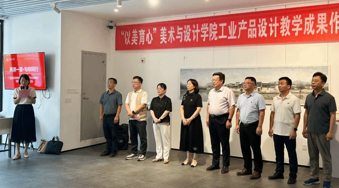 8月29日,美术与设计学院“以美育心”工业设计、产品设计专业教学成果展暨2024海峡两岸师生交流活动在“艺美空间”举行。学校党委常委、副校长王霞,学校党委常委、统战部部长徐庆国,学校教务处副处长、师范教育管理办公室主任张婷,美术与设计学院相关负责人、部分师生代表参加活动。此次成果展开幕式由美术与设计学院党委书记陈春锋主持。