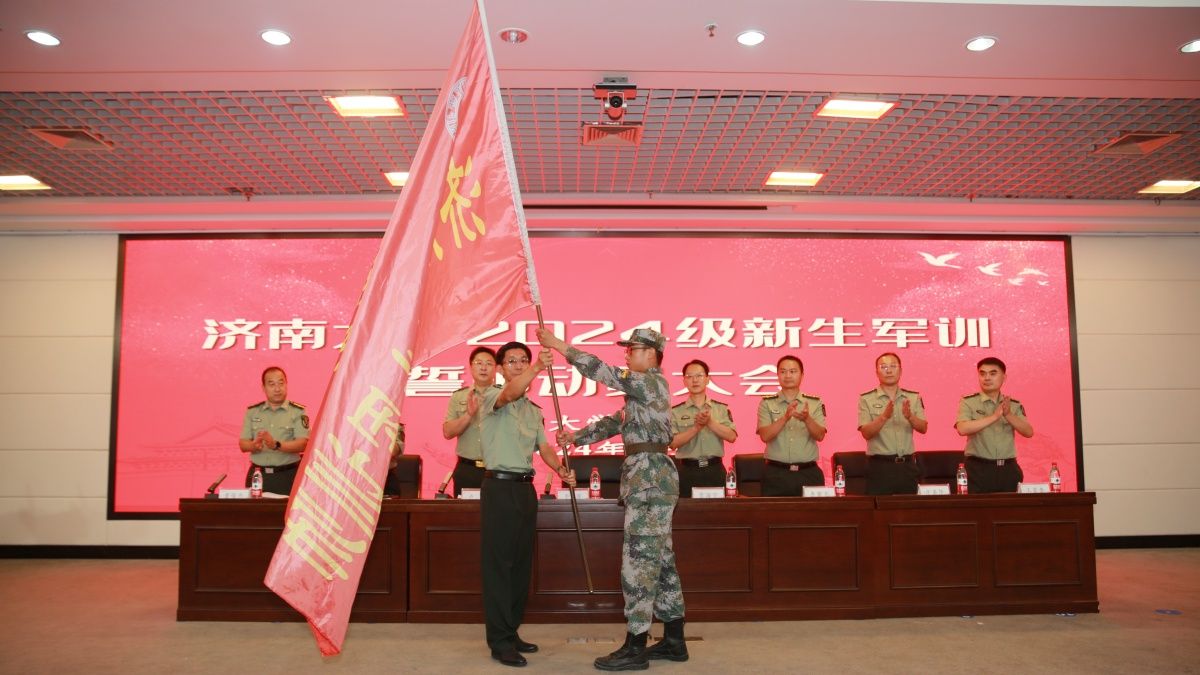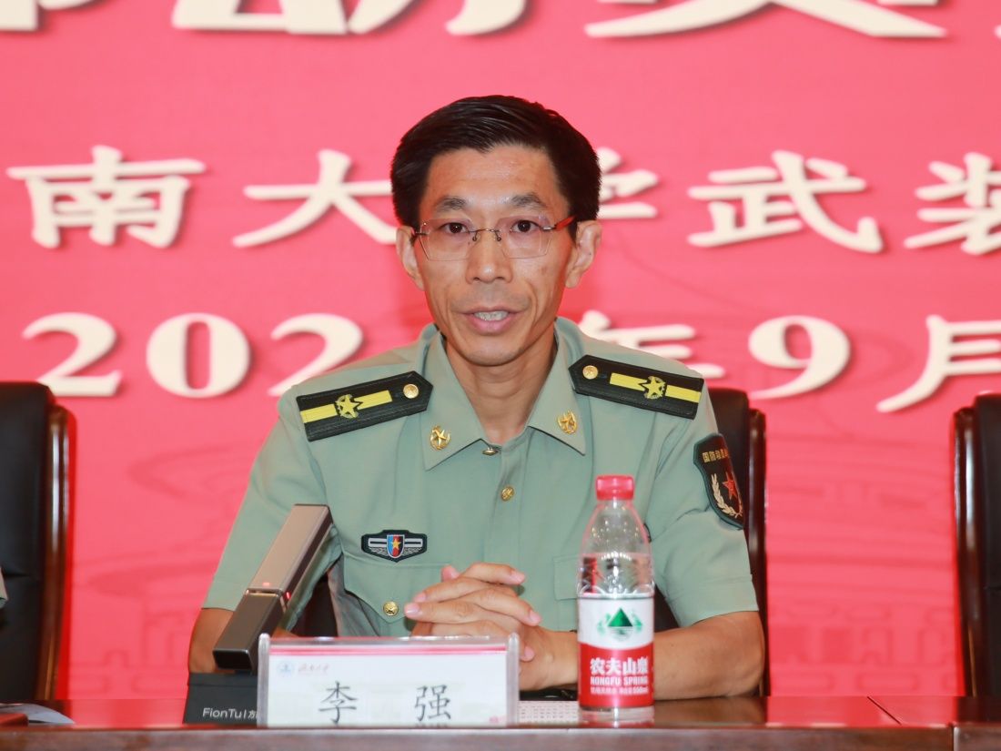 李强向军训师授旗并对做好2024级新生军训工作提出四点要求:一是要高站位,守底线,牢固树立“安全第一”的思想。各学院要把“安全第一”的思想贯穿军训全过程,及时、全面了解掌握学生的基本情况和思想状况,有效消除军训过程中的安全隐患,带训教官和新生辅导员要始终把学生的生命安全和身体健康放在第一位,保证军训安全平稳有序进行。二是要严要求,树形象,牢固树立“严管彰显厚爱”的思想。全体军训教官要严格要求,规范管理,科学施训,在认真执行军训训练计划的同时,注重培养大学生艰苦奋斗、自强不息的军人作风。三是要暖服务,助成长,牢固树立“以学生为本”的思想。新生辅导员要与军训教官共同开展军训工作,及时与军训教官进行沟通和协作,积极解决学生在军训过程中面临的实际问题和出现的思想问题。四是要践初心,担使命,牢固树立“崇军尚武”的思想。在军训的锤炼中发扬革命传统,把人民军队的优良作风转化为大学生涯的优良学风,携笔从戎、投身国防,努力用热血和汗水谱写青春赞歌。