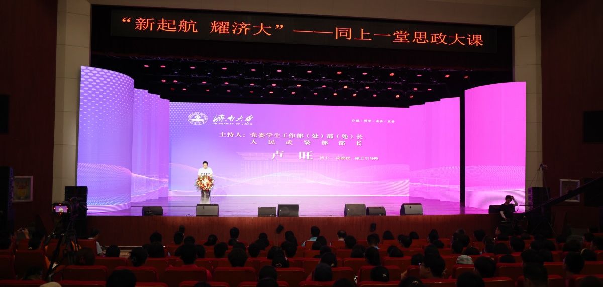 为深入学习贯彻党的二十届三中全会精神和习近平总书记关于加快建设教育强国的重要论述,全面落实学校四届五次全委会扩大会议精神,教育引导2024级新生坚定理想信念、厚植爱党爱国、爱校荣校情怀,9月9日,学校在大礼堂举办“新起航 耀济大”——同上一堂思政大课活动,邀请山东省优秀教师、山东高校思想政治课教学名师、永利yl23411官网教学名师、永利马克思主义学院概论部主任李朋忠教授为新生授课,全体2024级新生通过线上线下相结合的方式参与学习,教务处相关负责人以及各学院新生辅导员参加活动。活动由党委学生工作部(处)部(处)长 武装部部长卢旺主持。