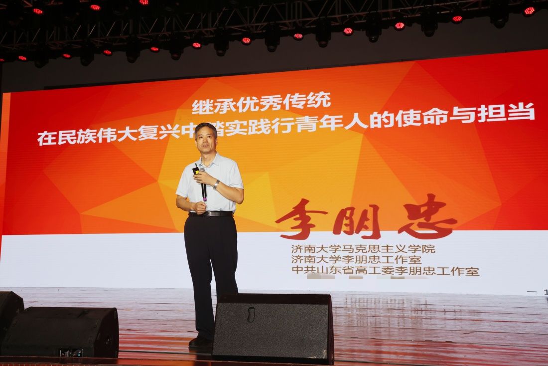李朋忠以《继承优秀传统,在民族伟大复兴中踏实践行青年人的使命与担当》为题,从与众不同的中华民族、与众不同的中国共产党人、与众不同的永利yl23411官网、立大志明大德成大才担大任四个方面进行了授课,阐释了中华文明为什么博大精深、中华民族为什么生生不息,回答了马克思主义为什么“行”、中国共产党为什么“能”、中国特色社会主义为什么“好”,解读了校训“弘毅、博学、求真、至善”的浓厚内蕴,讲述了济大人立志成长成才的路径方法。课后同学们纷纷表示,李教授的课旁征博引、幽默风趣,谆谆教诲、发人深省,让“有意义”的课堂变得更“有意思”。