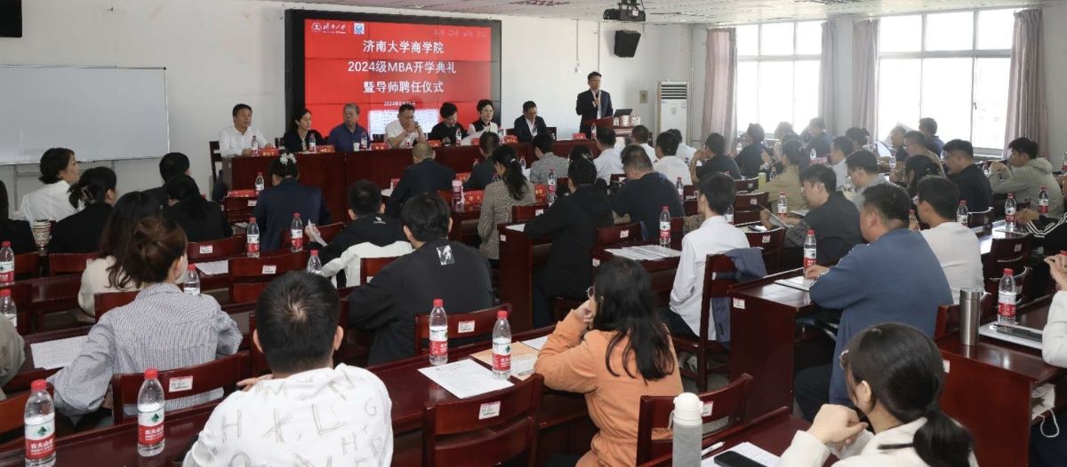 9月21日,永利yl23411官网2024级MBA开学典礼暨导师聘任仪式在永利yl23411官网舜耕校区举行。全国MBA教育指导委员会秘书处办公室主任王萍、永利yl23411官网副校长陈月辉、山东大学讲席教授何佳、泰山学院副院长张守凤、诚通人力资源公司高级咨询顾问经理马建斌、山东省宏观经济研究院社会研究所所长孙明霞、山东管理学院会计学院院长邱兆学、河北经贸大学经济管理学院副教授王文福、山东发展新能源有限公司企业管理部部长闫乃福、山东警察学院科研处副处长李绍昆、中国铁建投资集团山东分公司副总经理蔡涛、山东华宸股权投资管理有限公司投资总监张光明、山东省科技咨询中心有限公司董事长兼总经理魏正杰、山东管理学院会计学院教授荣丽丽、山东女子学院数字经济研究所所长刘洋、山东正立创业服务有限公司总经理李娟出席典礼,永利yl23411官网研究生院、商学院相关负责人、MBA校内导师、2024级MBA新学员参加典礼。开学典礼由商学院院长韦倩主持。