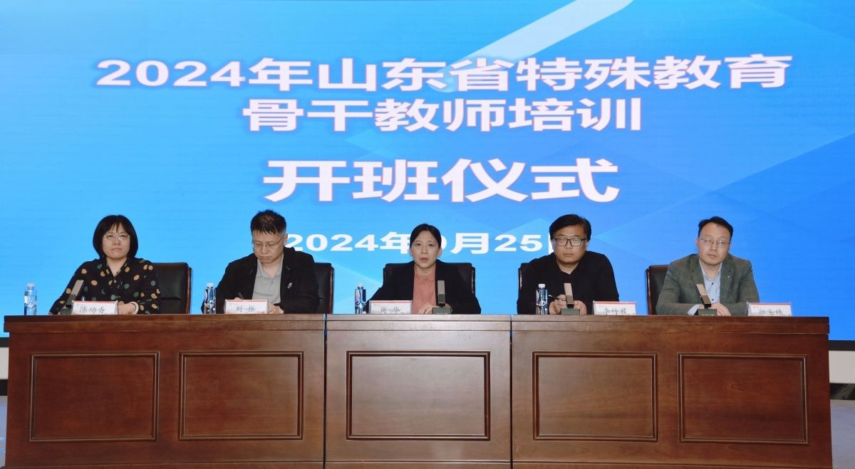 教育与心理科学学院院长陈功香介绍了学院的发展历程和近年来特殊教育学科在人才培养、科学研究、社会服务等方面所取得的成绩。她表示,本次培训积极响应党的二十届三中全会关于健全特殊教育保障机制的政策号召,作为山东省教育厅等五部门推进师范教育高质量发展措施的具体实践,通过省级骨干教师能力提升培训,旨在强化特殊教育师资队伍建设,提升教师专业素养与实践能力,为新时代特殊教育的改革与发展贡献力量。教育与心理科学学院党委书记季竹君代表学院党委,向长期以来对学院发展给予深切关心、大力支持和无私帮助的各位领导、同仁以及社会各界人士表达了衷心的感谢。他表示,省教育厅和学校高度重视此次培训,要求高质量完成培训任务,并就本次培训的课程设置和培训纪律进行了说明。