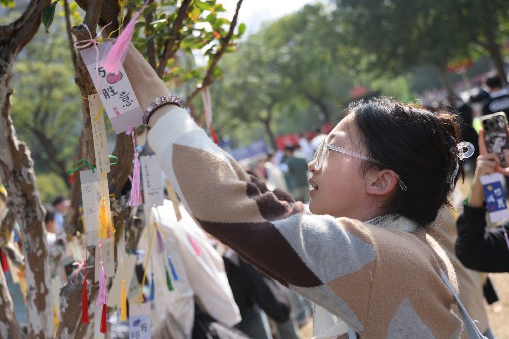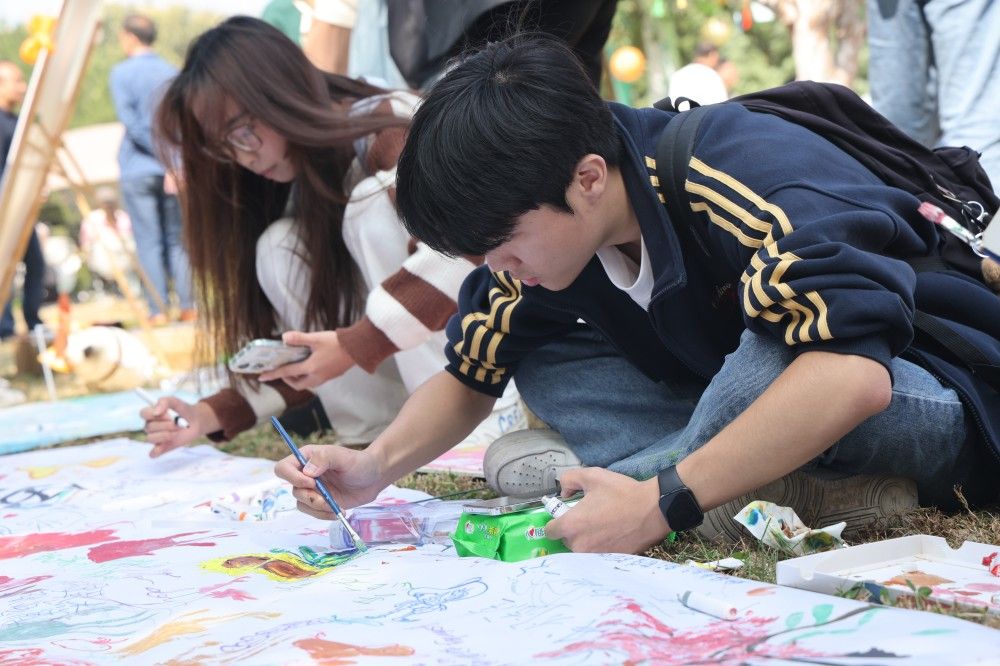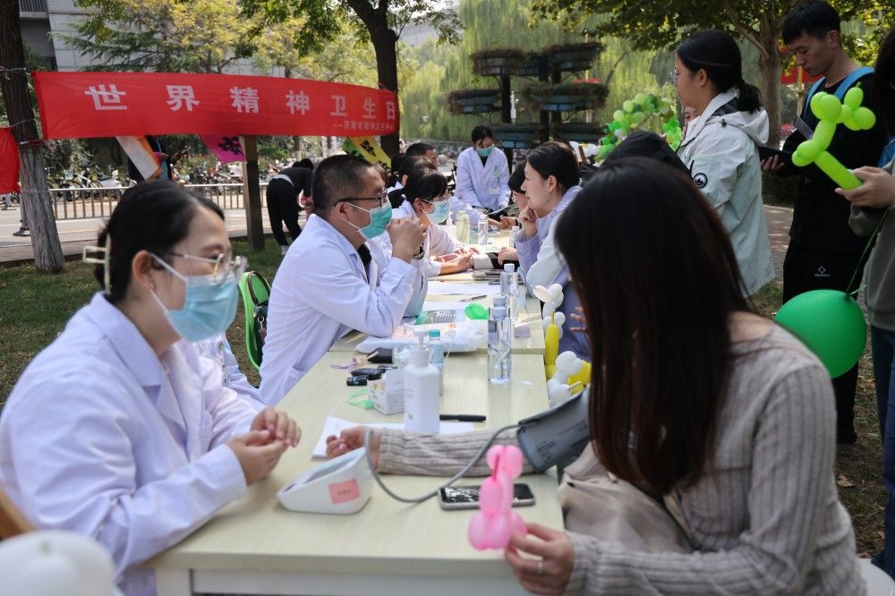 体验月以“心中有力量,自然有答案”为主题,整合校家医警社资源,以心理健康与自然环境和谐融入为设计理念,以基于正念的认知行为疗法、自然疗法和音乐疗法等为理论基础,以心理义诊、心理戏剧、音乐抒情、运动减压、阅读疗愈、朋辈辅导、主题班会、家校课堂、心理测评、个体咨询和团体辅导为活动形式,依托“滋兰苑”自然元素设置生命之树、幸福之树、能量之树三个体验区,一是“生命之树”体验区,融入“乐观成长”元素,设置“音你而来,律动未来”草地音乐区、“鼓动青春,悦动心灵”击鼓放松区和“趣享游戏,悦动身心”心理戏剧区,通过音乐观赏、击鼓体验、戏剧表演等形式帮助学生探索自我、表达自我。二是“幸福之树”体验区,融入“积极阳光”元素,设置“乐享秋日,指上添花”手工体验区和“彩绘生活,心灵涂鸦”涂鸦打卡区,通过手工制作、绘画体验、文学创作实现艺术疗愈和身心放松。三是“能量之树”体验区,融入“放松希望”元素,设置“心灵绿洲,悦享自然”正念体验区和“到自然,读一本书”草坪阅读区,邀请师生共同参与正念体验,开展草地阅读疗愈,鼓励参与者关注当下,舒缓压力。活动现场,济南市精神卫生中心心理专家和社区民警、24小时心理热线负责人进行心理义诊,学校“向上心青年”团队进行朋辈宣讲,参与师生还现场体验了心理AI智能仪等高科技设备。活动期间,学校在教学楼、学院办公区、图书馆、食堂和学生公寓等以滚动字幕、图片等方式宣传心理健康知识,学校广播站循环播放“积极心理倡议书”,共同营造全环境心理育人氛围,提高学生心理健康素养。活动月期间,学校将持续开展心理情景短剧大赛、新生适应主题班会、“心悦读”读书会、“迎迎”家长课堂、向上心青年“伴爱成长,我心飞扬”心理沙龙等心理健康教育活动,持续压实四级心理健康工作网络。