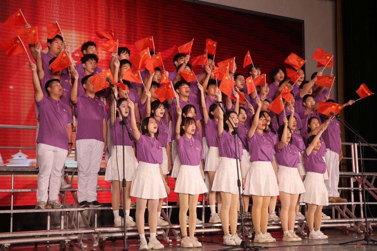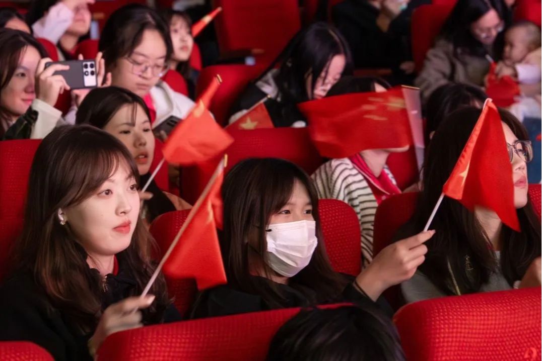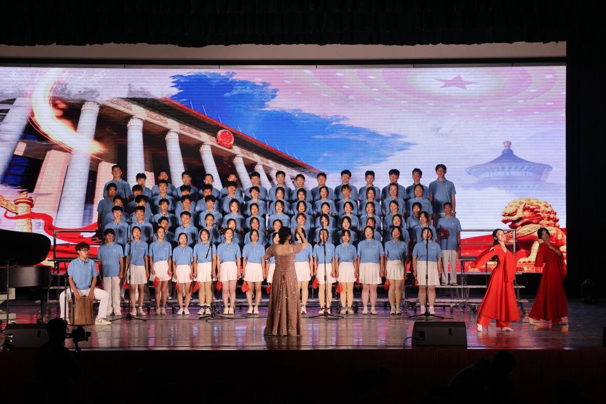 汇报展演现场,学校党委常委、副校长王霞领衔学工合唱团唱响校歌《你我同行》,以歌载梦,讴歌学校,激励学子。互动环节,全体观众共同挥动手中的国旗,满怀着对祖国的热爱,高声合唱《万疆》。