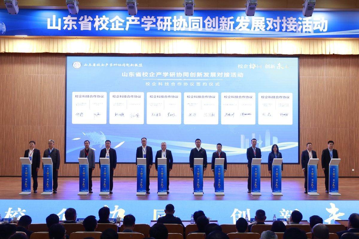 在会议集中签约环节,黄加栋与山东华光光电子股份有限公司副总经理赵军华签订了校企全面合作协议。会议开幕式上正式成立了山东省校企产学研协同创新联盟,联盟作为以高校、企业为主体,致力于科技协同创新、成果高效转化的公益性、非法人组织,是我省推动校企科技协同创新,产学研深度合作的重要载体平台。