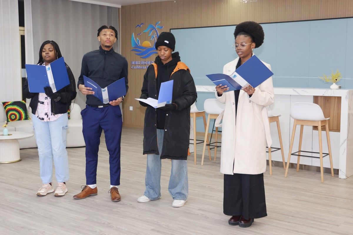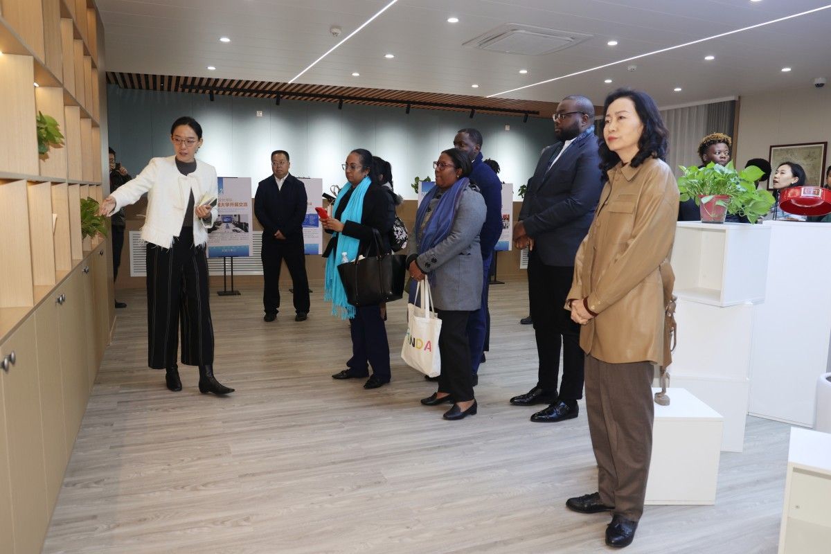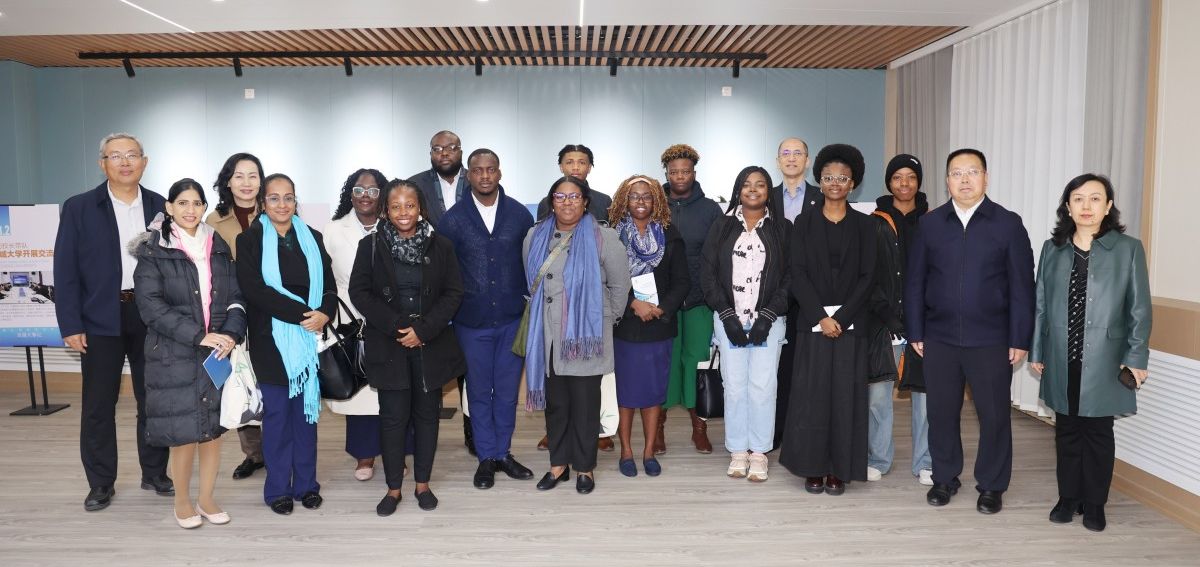 在加勒比地区研究中心,来自牙买加、海地等4位留学生代表表演了中文诗朗诵,并与代表团进行了亲切友好的交流。