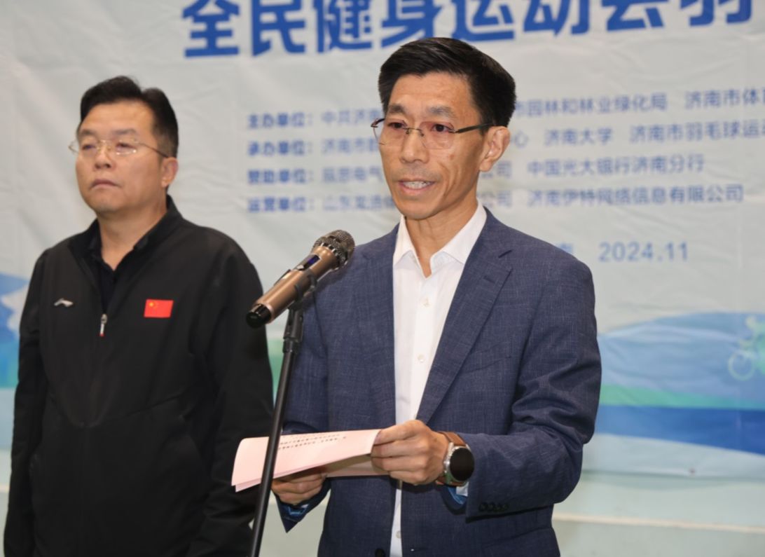 本次赛事由中共济南市委宣传部、济南市园林和林业绿化局、济南市体育局、济南文旅发展集团主办。永利yl23411官网党委常委、副校长李强,济南市体育局党组成员、副局长张居忠出席开幕式。济南市羽毛球运动协会、山东文旅传媒集团、辰思电气(山东)有限公司、中国光大银行泉城支行、山东龙浩体育发展有限公司、永利yl23411官网体育学院有关负责同志参加活动。