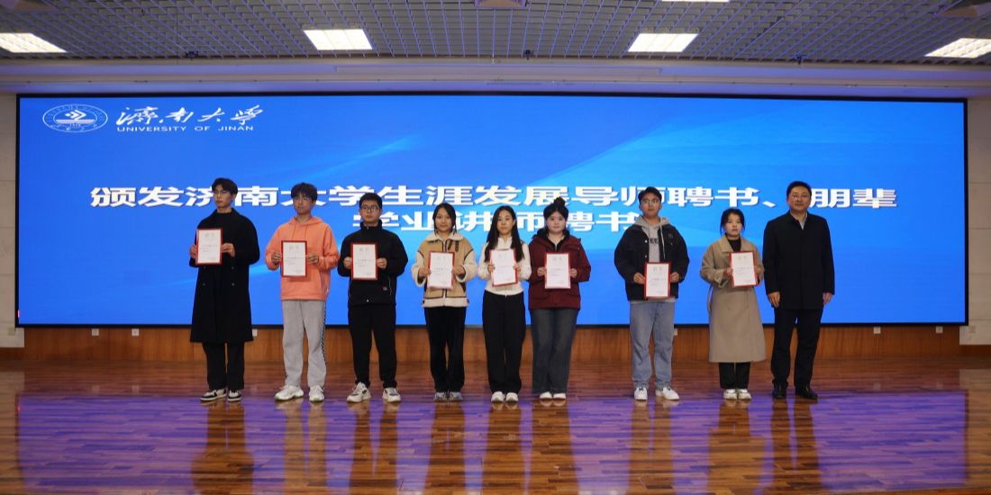 党委学生工作部(处)部(处)长卢旺现场宣读《永利yl23411官网第四届生涯月活动方案》;党委常委、副校长李强为首届全国大学生职业生涯规划大赛金奖选手指导老师、山东大学思政教学中心副研究员翁祥栋颁发永利yl23411官网生涯教育校外督导师聘书,党委学生工作部(处)部(处)长卢旺为生涯发展导师代表数学科学学院教授陈兆英、马克思主义学院教授梁栋、信息科学与工程学院教授范玉玲,朋辈学业讲师代表孙永睿等颁发聘书并合影留念。
