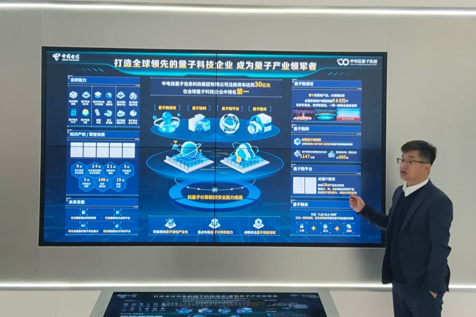 会议期间,中电信量子集团华北公司总经理武云超带领参观了电信数智化展厅,重点介绍了量子加密传输、量子通信等相关产业布局。中电信量子集团华北公司副总经理洪泰辉重点介绍了量子展区,介绍了公司在量子城域网、量子通信教学、量子计算教学方面的优势。
