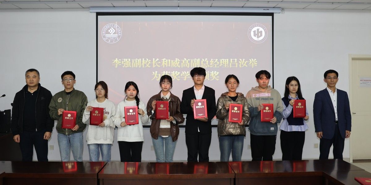 山东威高新生医疗器械有限公司本着关心、支持教育事业的初心,为国家和企业培养有理想、有道德、有文化、有责任担当的专业人才,2022年特设立“永利yl23411官网化学化工学院—威高新生奖学金”,用于奖励化学化工学院高分子材料与工程专业创新实验班学生。截至目前,该奖学金已经奖励资助学生93人次,在“威高新生”奖学金的影响带动下,化学化工学院首届高分子材料与工程创新试验班高材2006班,在2024年全国硕士研究生考试中,11人成功推免硕士研究生,11人成功考取硕士研究生,考研率高达91.66%,创学校、学院历史新高。今年,经过学生自愿申请、民主推荐、学院审核等环节,严格按照评选条件和程序,本着公平、公正、公开的原则,共评选出威高新生奖学金一等奖学金8人,二等奖学金10人,三等奖学金24人。