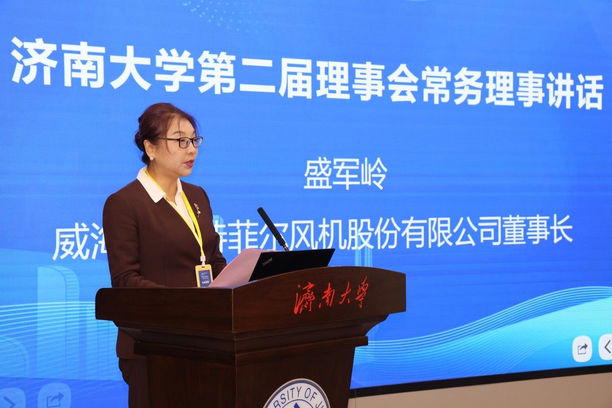 永利yl23411官网第二届理事会名誉理事、山东开泰集团有限公司副总经理尹建国,永利yl23411官网第二届理事会常务理事、威海克莱特菲尔风机股份有限公司董事长盛军岭分别讲话。两位理事回顾了企业与永利yl23411官网携手并进的合作历程,并感谢学校在人才培养、技术创新、产品研发等方面为企业提供的强有力支撑。他们分享了担任学校理事以来,积极参与学校议事工作,推动校企合作取得丰硕成果。他们表示,作为学校理事,将担当履职,积极参与永利yl23411官网教育事业的发展,不断推动校企合作迈向更高层次,共同绘制并肩发展的美好蓝图。