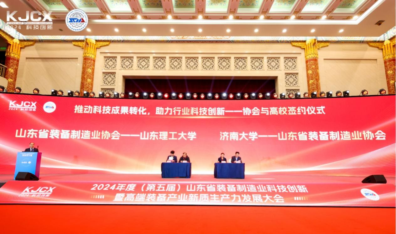 11月29日,由中国机械工业联合会、山东省工信厅、科技厅指导,山东省装备制造业协会主办的“2024年度(第五届)山东省装备制造业科技创新大会”在济南市南郊宾馆召开。中国机械工业联合会会长徐念沙,山东省工信厅党组成员、副厅长王茂庆,山东省创新发展研究院党组成员、副院长杜广选,山东省装备制造业协会会长高玲以及中国机电工业价格协会、山东省财金投资集团、省工信厅、科技厅相关处室、各市和区县工信部门有关科室、各市装备制造业协会负责人以及获奖企业、装备制造企业和优质服务机构代表400余人参加会议。学校党委常委、副校长黄加栋应邀出席会议,学校科技处、机械工程学院、自动化与电气工程学院相关负责同志和教师代表参加了活动。