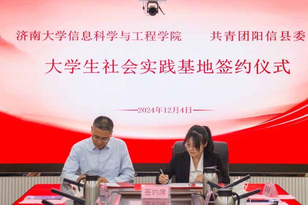 签约仪式上,永利yl23411官网信息科学与工程学院党委书记夏卫东与共青团阳信县委书记吴振香签订《大学生社会实践基地协议》,永利yl23411官网信息科学与工程学院党委副书记、副院长郝伟与阳信县电子信息产业园服务中心主任张俊霞签订《青年就业创业见习基地协议》。王霞和李华伟共同为“大学生社会实践基地”揭牌,永利yl23411官网团委副书记、创新创业学院院长纪祥与张天军共同为“青年就业创业见习基地”揭牌。