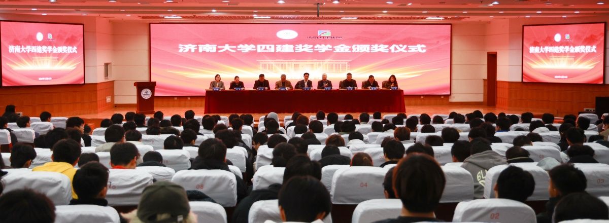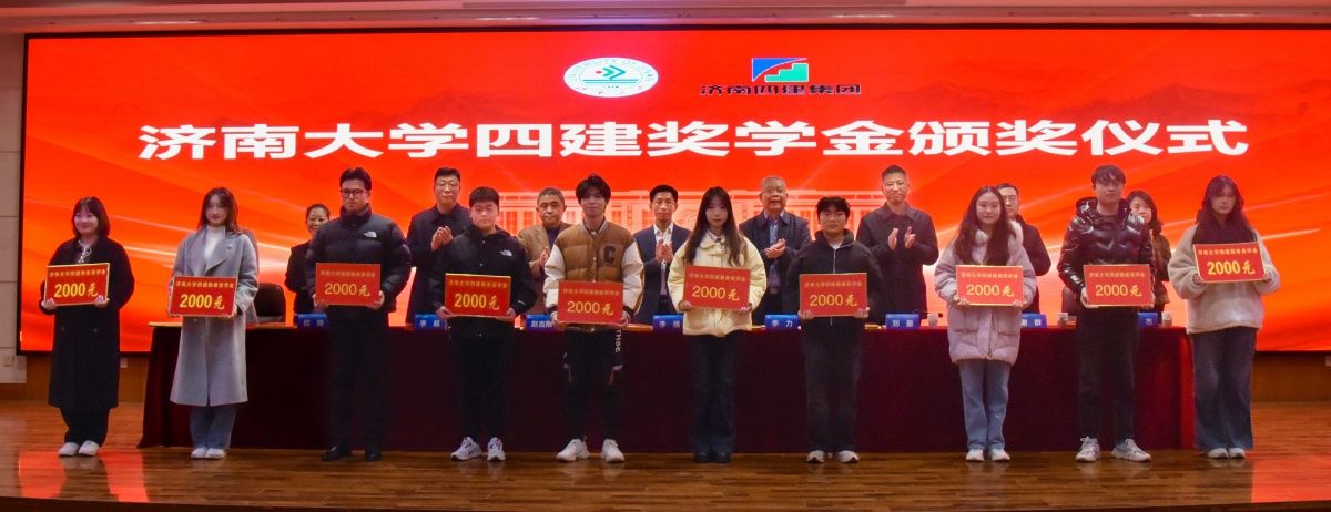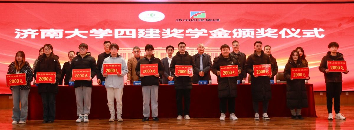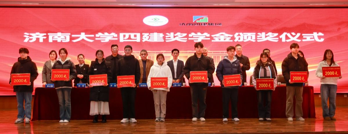 合作发展处处长、教育发展基金会办公室主任刘振宣读了表彰决定,与会领导为荣获“济南四建奖学金”的40名同学颁奖。