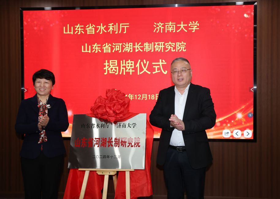 仪式上,黄加栋和肖红共同为山东省河湖长制研究院揭牌。水利与环境学院桑国庆教授就水利工程学科服务山东省河湖长制工作作了汇报,山东省建筑材料制备与测试技术重点实验室李琴飞副教授对水利工程用绿色与智能建筑材料成果进行推介。双方就下一步落实研究院各项任务进行了深入交流。