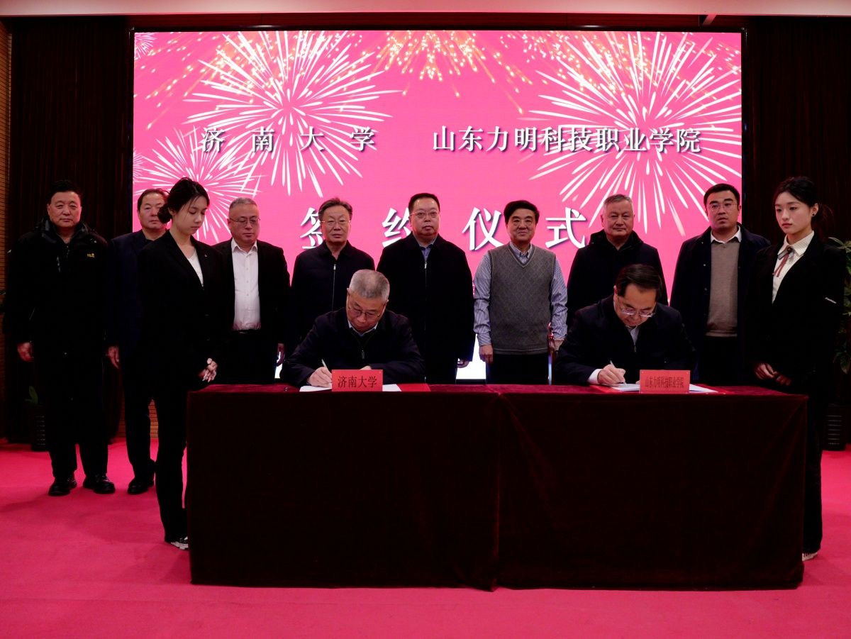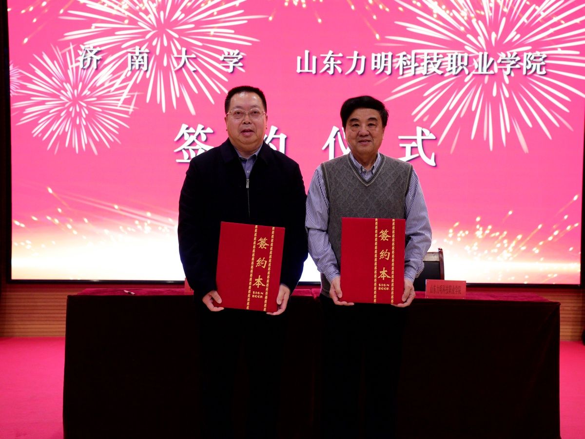 12月24日,永利yl23411官网与山东力明科技职业学院合作签约仪式在力明学院泰安校区举行。永利yl23411官网党委副书记、校长刘宗明,党委常委、副校长黄加栋,副校长徐征和,山东力明教育集团董事长王力一,山东力明科技职业学院党委书记张士强,党委常务副书记、代院长刘晓臣出席签约仪式。学校办公室、教师发展中心、教务处、发展规划与学科建设处、校医院相关负责同志,力明学院宫德志、沈子旺、景学安、孙宣雷等院领导参加活动。