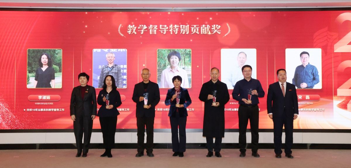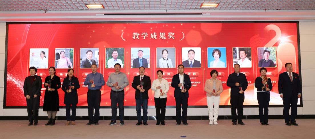 大会表彰阶段,在教育教学工作中表现突出的个人和集体依次上台领奖。当获得“教学成果奖”“教学荣誉奖”“教学比赛奖”“课程建设奖”“优秀辅导员奖”“高水平教材奖”“基层教学组织奖”“优秀指导教师奖”以及“教学督导特别贡献奖”等9个奖项的获奖代表,从校领导手中接过奖杯和证书的时候,全场响起了热烈的掌声。