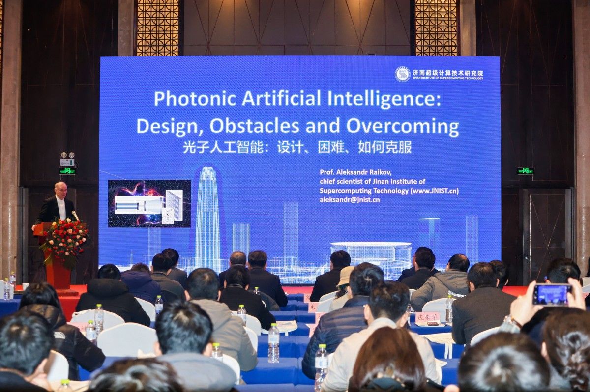 会议特别邀请俄罗斯自然科学院院士、济南超级计算技术研究院首席科学家赖科夫·亚历山大作主旨报告,他以“光子人工智能:设计、困难、如何克服”为题,介绍了光子人工智能涉及的新材料合成工艺、设计关键点及应用前景。