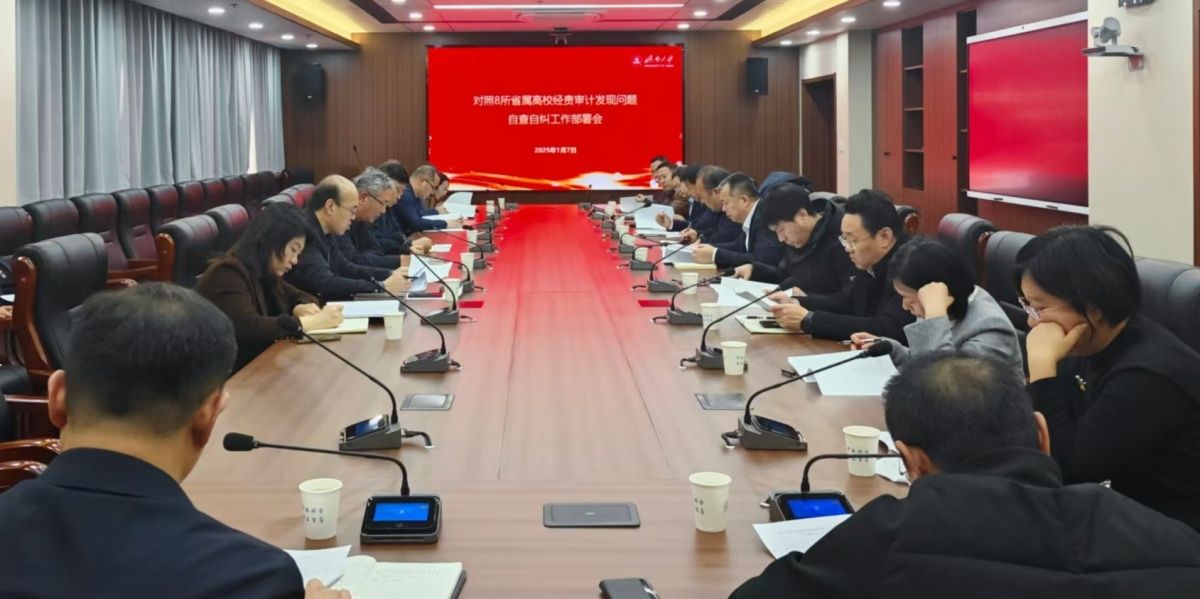 1月7日,学校召开对照8所高校审计发现问题开展自查自纠工作部署会。学校党委常委、副校长张勇出席并主持会议。有关部门负责人参加会议。