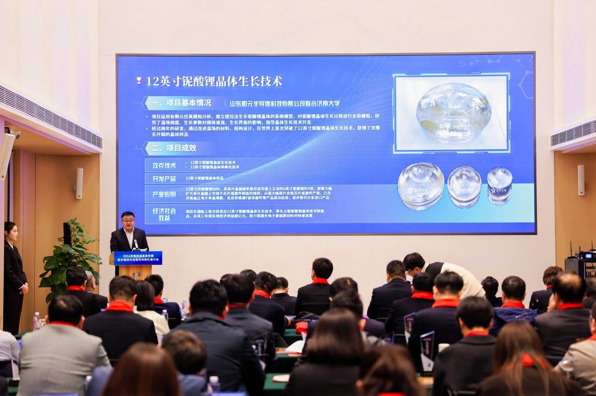 发布会上,济南市科技局发布了20项“济南好成果提名榜单”,其中10项入选“山东好成果专报”,10项入选“济南好成果”榜单。永利与山东恒元半导体科技有限公司完成的“12英寸光学级铌酸锂晶体”项目入选“山东好成果专报”,该成果是继永利成功转让8英寸铌酸锂晶体专利技术后合作研制的全球首个12英寸光学级铌酸锂晶体,标志着我国光电子领域关键材料取得重大突破,目前大尺寸铌酸锂晶体已在多个领域实现了成功应用。
