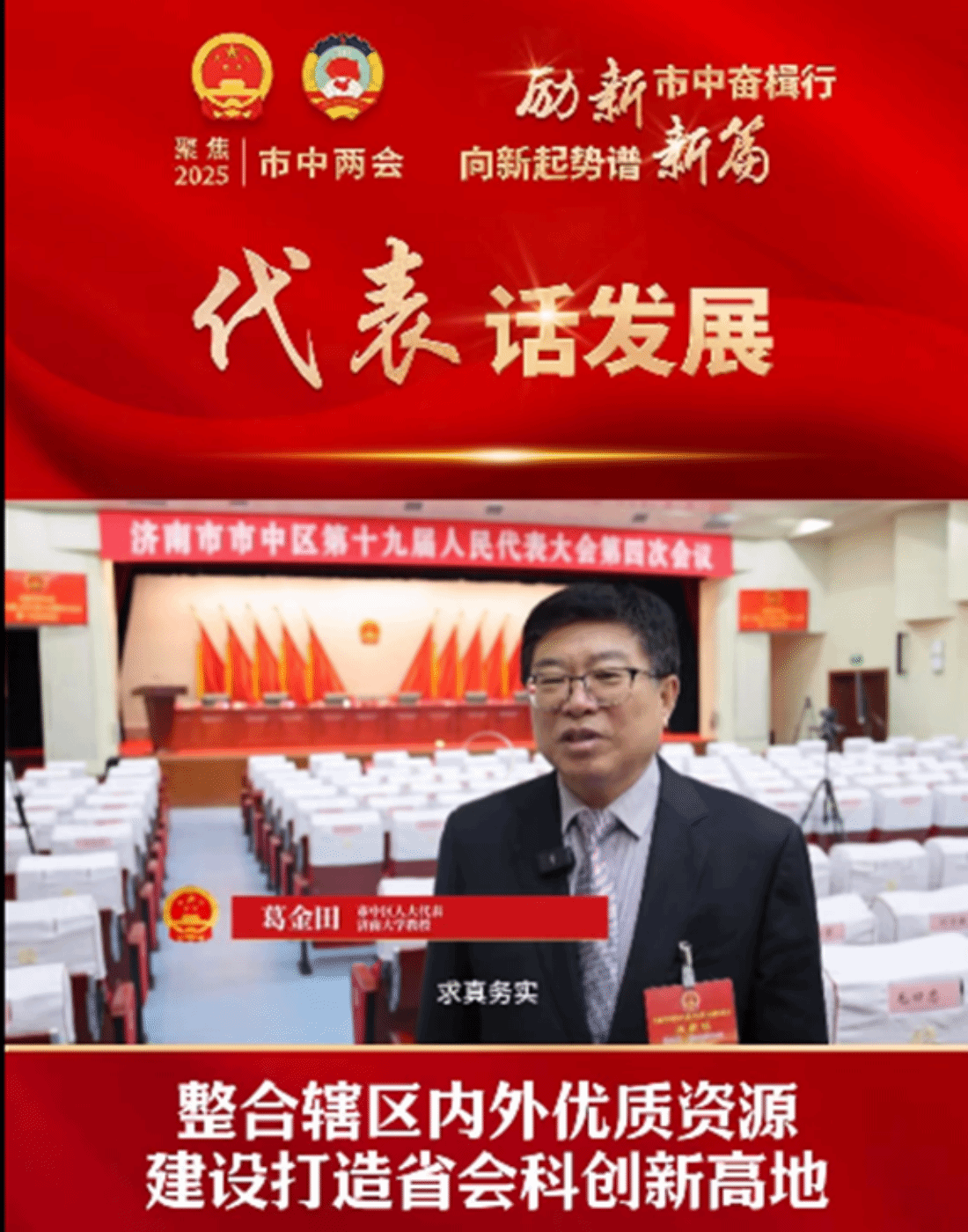 会议期间,葛金田教授接受了市中区融媒体专访并发表了电视访谈,向大会提出了《整合辖区内外优质资源,建设打造省会科创新高地》的建议,并提交了《关于规划打造市中二环南路科技创新走廊的建议》。崔玉教授提交了《智慧文脉·启航未来:加速市中区文化教育领域数字化转型与创新发展》建议。安同信教授积极参加讨论,向大会提出了《深刻把握济南商埠文化的丰富内蕴 聚力提升市中软实力》《加强市区建筑外立面管理 打造美丽市中》的建议。孙红卫教授、刘红开博士提交了《清洁海绵释放微塑料纤维(MPFs)引发环境危害亟待关注》的提案。杨健教授积极履行委员职责,建言献策,分别提交了《关于建设“望岳楼”进一步提升济南旅游历史文化底蕴的建议》《关于进一步完善交通设施让市中区更好更快融入济南地铁交通圈的建议》。谷劲松教授提交了《关于加强山东省对“老赖”惩戒力度,维护司法权威与社会诚信的建议》的大会发言,另外还提交了政协提案2件,社情民意信息2件。谷劲松教授去年的提案《多元化教育引爆高品质市中生活示范区》在本次大会上被评为2024年度优秀提案。