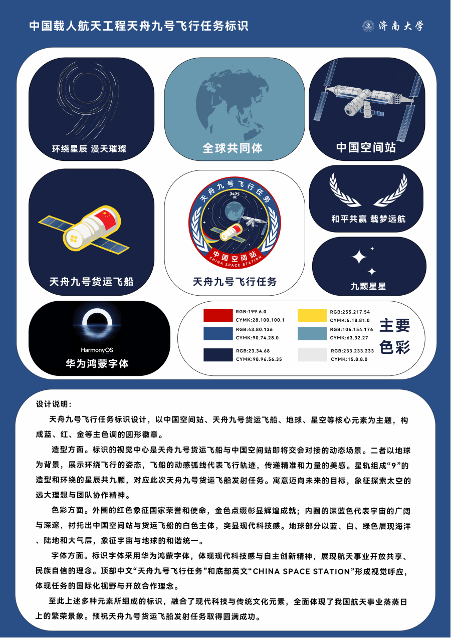 近日,2025年度中国载人航天工程飞行任务标识征集结果正式公布,由永利yl23411官网文学院广告学专业教师孙建栋指导、广告学学生姚佳设计的“中国载人航天工程天舟九号飞行任务标识”成功入选,成为中国航天事业的重要象征。这一标识将代表中国航天工程中的一项重要任务,成为中国航天精神与科技创新的视觉标志之一。