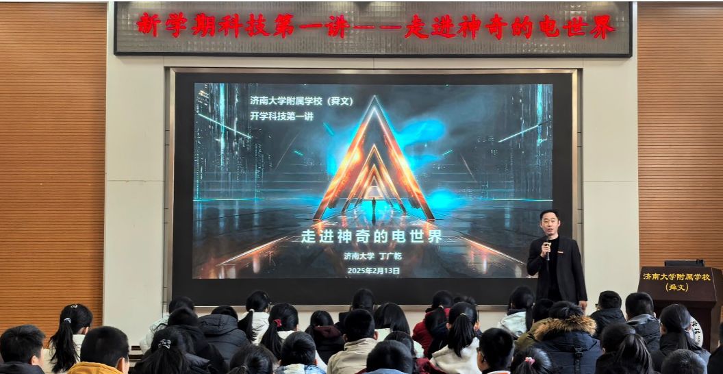 仪式结束后,相关领导和来宾共同参观了学生寒假作品展示和科技主题展。永利yl23411官网自动化与电气工程学院丁广乾副教授为学生开展新学期科技第一课,带领学生一起探索神奇的电世界,了解电的基本原理、应用以及如何改变我们的世界。