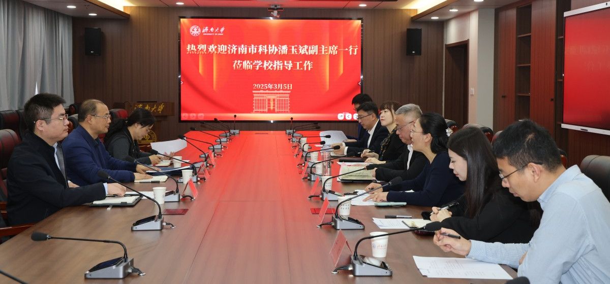 黄加栋对潘玉斌一行的来访表示欢迎,并对济南市科协长期以来关心支持永利yl23411官网的发展表示感谢。他介绍了学校在科技创新、海外人才引育、国际合作交流、青年科技人才培养以及校地海外人才引育联合体等方面的工作进展。他指出,永利yl23411官网在科技创新及科技合作方面取得了良好成效,这与科技人才队伍的不断发展壮大密不可分,学校正积极拓宽国际合作渠道,已与多所全球知名学府及研究机构建立了稳固且持久的合作关系,并通过多种举措吸引海外优秀人才加盟。学校将在市科协的指导与支持下,继续加大在科技合作、海外人才引育以及青年科技人才培养等方面的工作力度,搭建更加坚实的桥梁,共同为济南市的科技创新和经济社会发展贡献更大力量。