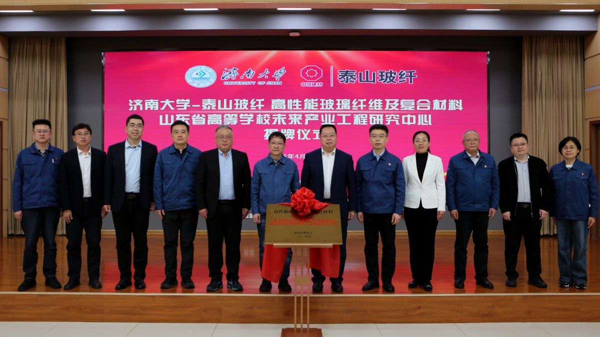 黄加栋与刘利锋共同为“高性能玻璃纤维及复合材料山东省高等学校未来产业工程研究中心”揭牌。