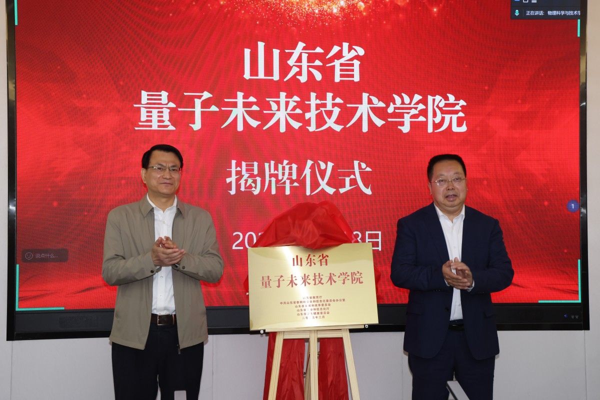 曾宪文与刘宗明共同为山东省量子未来技术学院揭牌,标志着学院正式成立并进入实质性建设阶段。